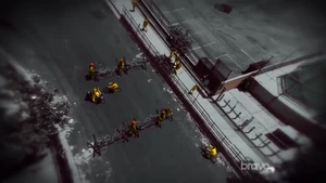 Bram and his teacher are put on a bus along with dozens of others. When they stop, they're interrogated by Sgt. Jenkins about their skills. A young woman tells the man that she worked on a road crew; Bram lies and says he's 20 years old and knows how to lay concrete. Mr. Carson, Bram's teacher tells the truth about being a Science teacher - he's beaten and put back on the bus.